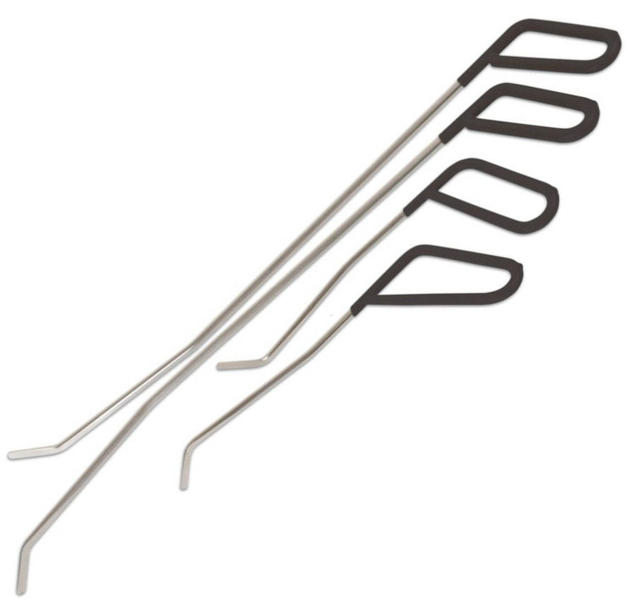 - Speciális PDR ajtópanel-szerszámkészlet, amellyel hozzáférhet a horpadás hátsó részéhez, egyedi tervezésű rudak átcsúsztatásával az üveg és az ajtó tetején lévő gumi közötti résen.